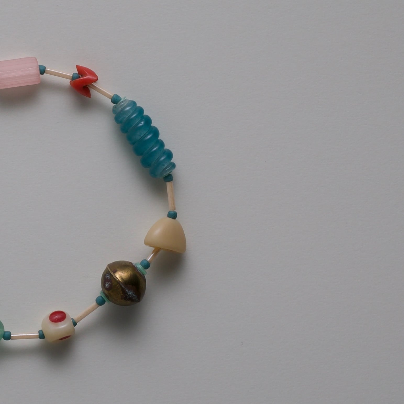 丸いカボチャのような水色の可愛い色のフローライトの天然石。