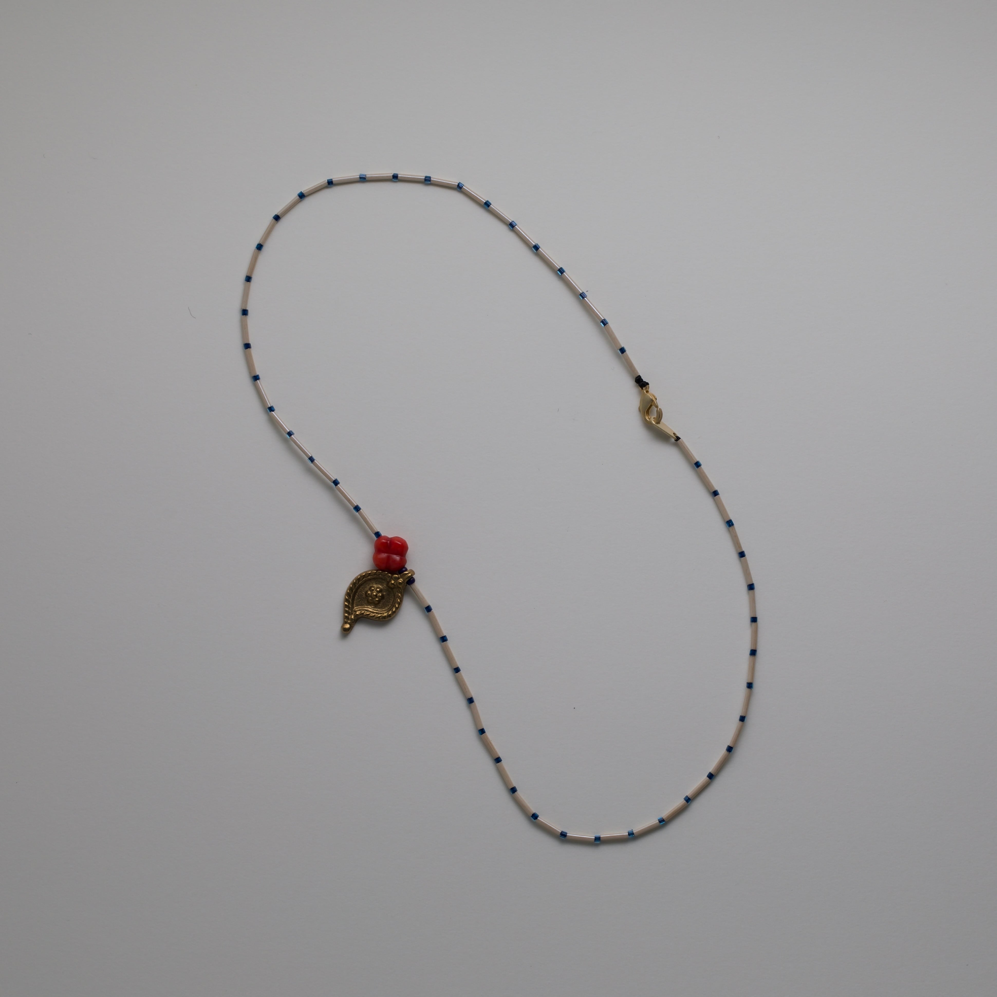 真鍮のペイズリーチャームと赤いお花の珊瑚。