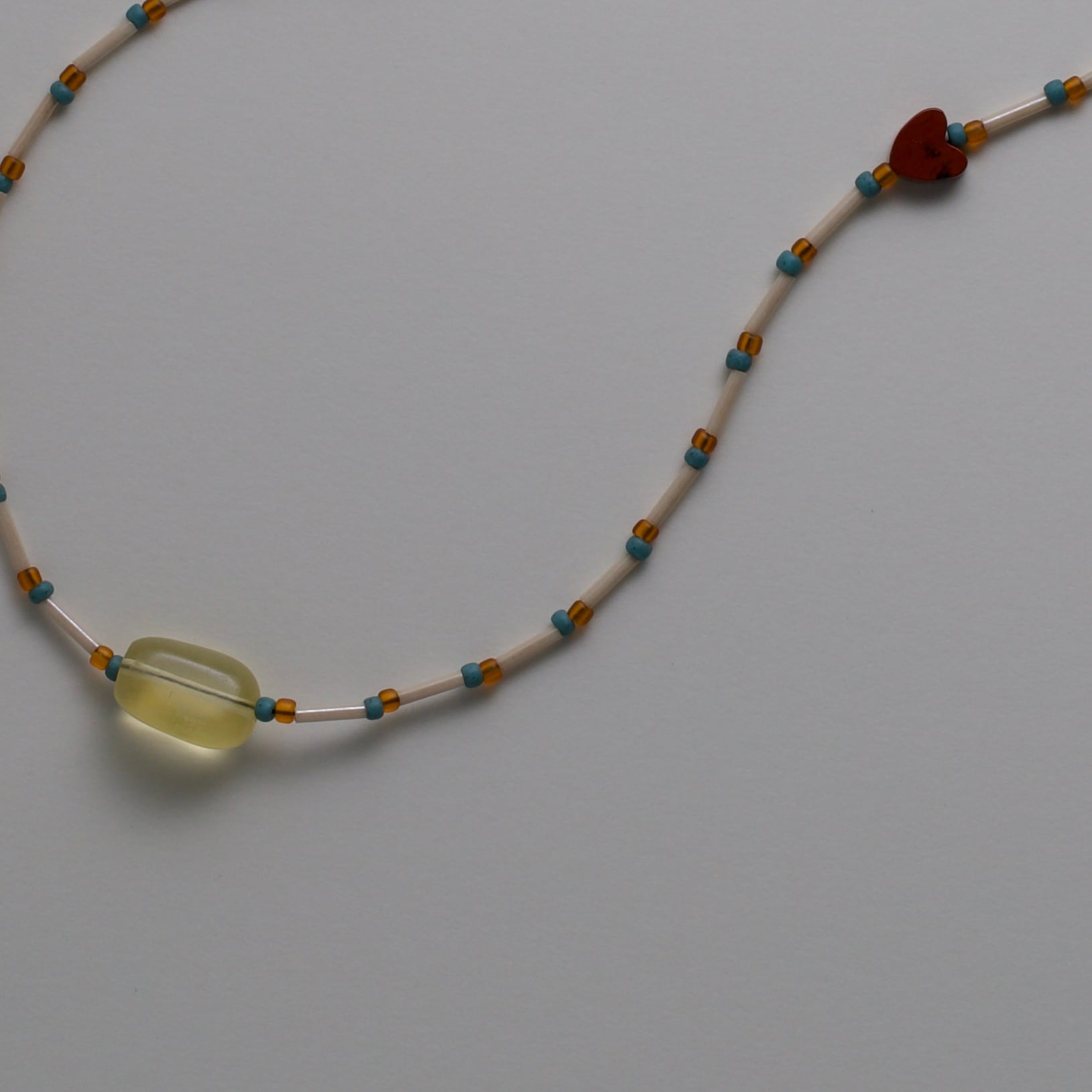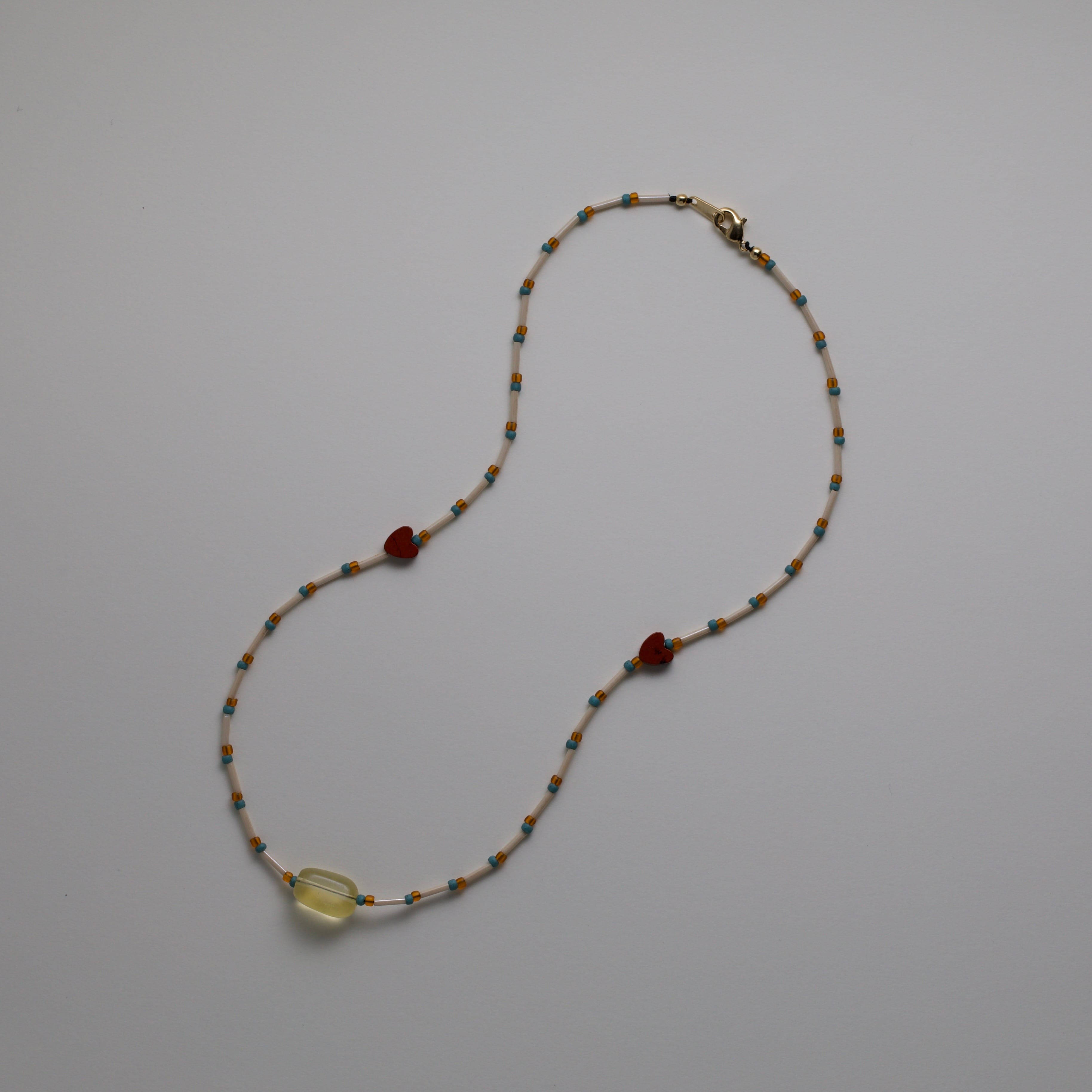黄色が可愛いフローライトとハートのレッドジャスパーパー 石のサイズ 12mm ネックレスの長さ 38cm Ochoのネックレスは、繊細なつくりと天然石を使用しています。 水や汗、衝撃には弱いため、ビーズのゆるみや破損を防ぐためにも、お取り扱いにはやさしくご注意ください。