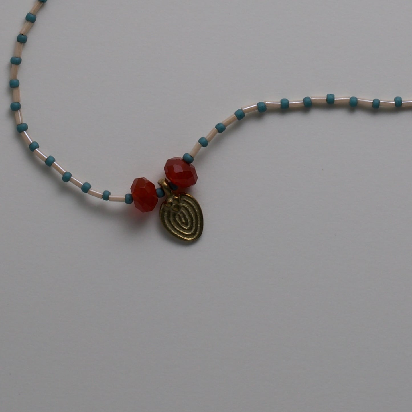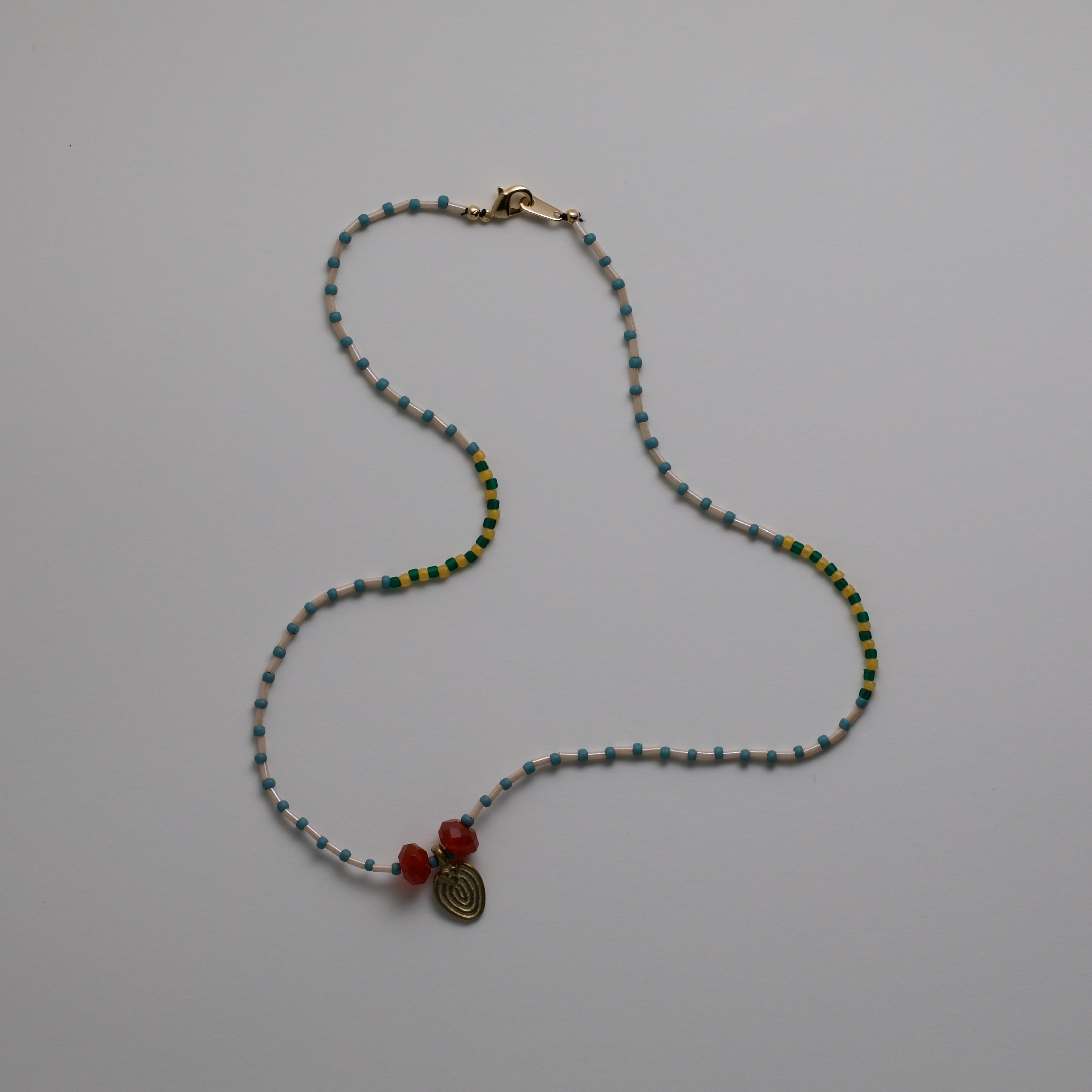 石のサイズ 0.6mm×2 真鍮チャーム14mm ネックレスの長さ 37cm Ochoのネックレスは、繊細なつくりと天然石を使用しています。 水や汗、衝撃には弱いため、ビーズのゆるみや破損を防ぐためにも、お取り扱いにはやさしくご注意ください。