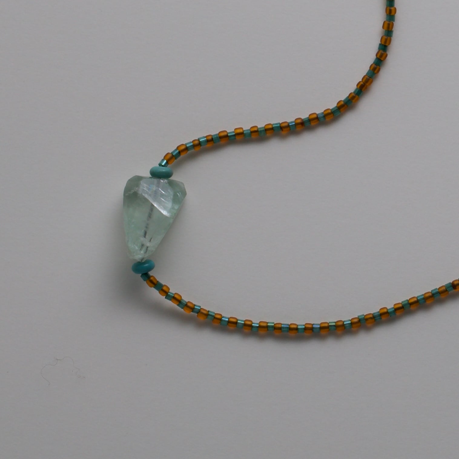 氷みたいなレインボーフローライト。 石のサイズ 15mm ネックレスの長さ 39cm Ochoのネックレスは、繊細なつくりと天然石を使用しています。 水や汗、衝撃には弱いため、ビーズのゆるみや破損を防ぐためにも、お取り扱いにはやさしくご注意ください。