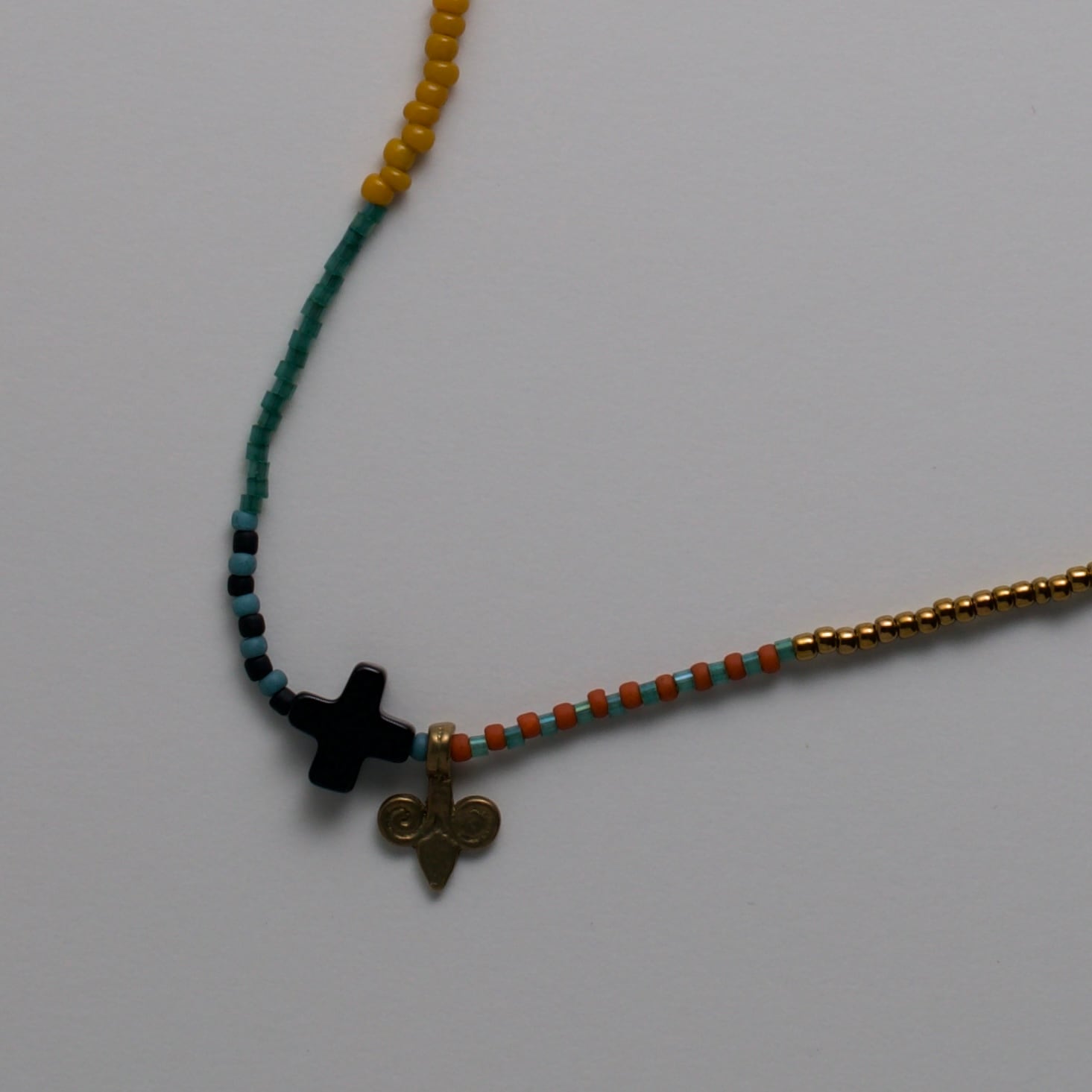 定番になりつつあるクロスのオニキス。 真鍮チャームと♡ 石のサイズ 10mm ネックレスの長さ 39cm Ochoのネックレスは、繊細なつくりと天然石を使用しています。 水や汗、衝撃には弱いため、ビーズのゆるみや破損を防ぐためにも、お取り扱いにはやさしくご注意ください。