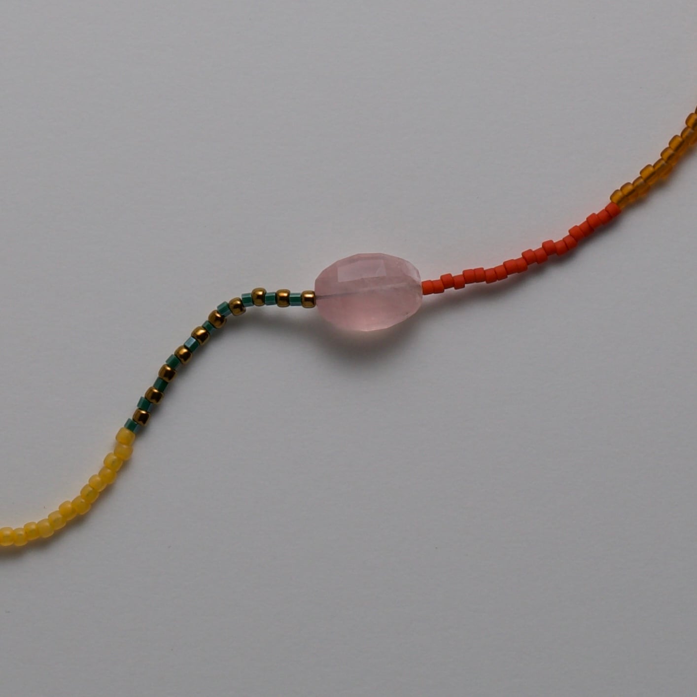 綺麗かカットのローズクォーツ。 石のサイズ 1.2mm ネックレスの長さ 46cm Ochoのネックレスは、繊細なつくりと天然石を使用しています。 水や汗、衝撃には弱いため、ビーズのゆるみや破損を防ぐためにも、お取り扱いにはやさしくご注意ください。