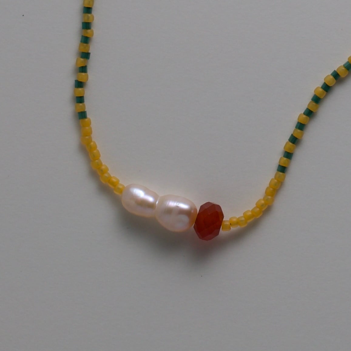 可愛い形のパールとカーネリアン。 石のサイズ パール 15mm カーネリアン 0.6mm ネックレスの長さ 39cm Ochoのネックレスは、繊細なつくりと天然石を使用しています。 水や汗、衝撃には弱いため、ビーズのゆるみや破損を防ぐためにも、お取り扱いにはやさしくご注意ください。