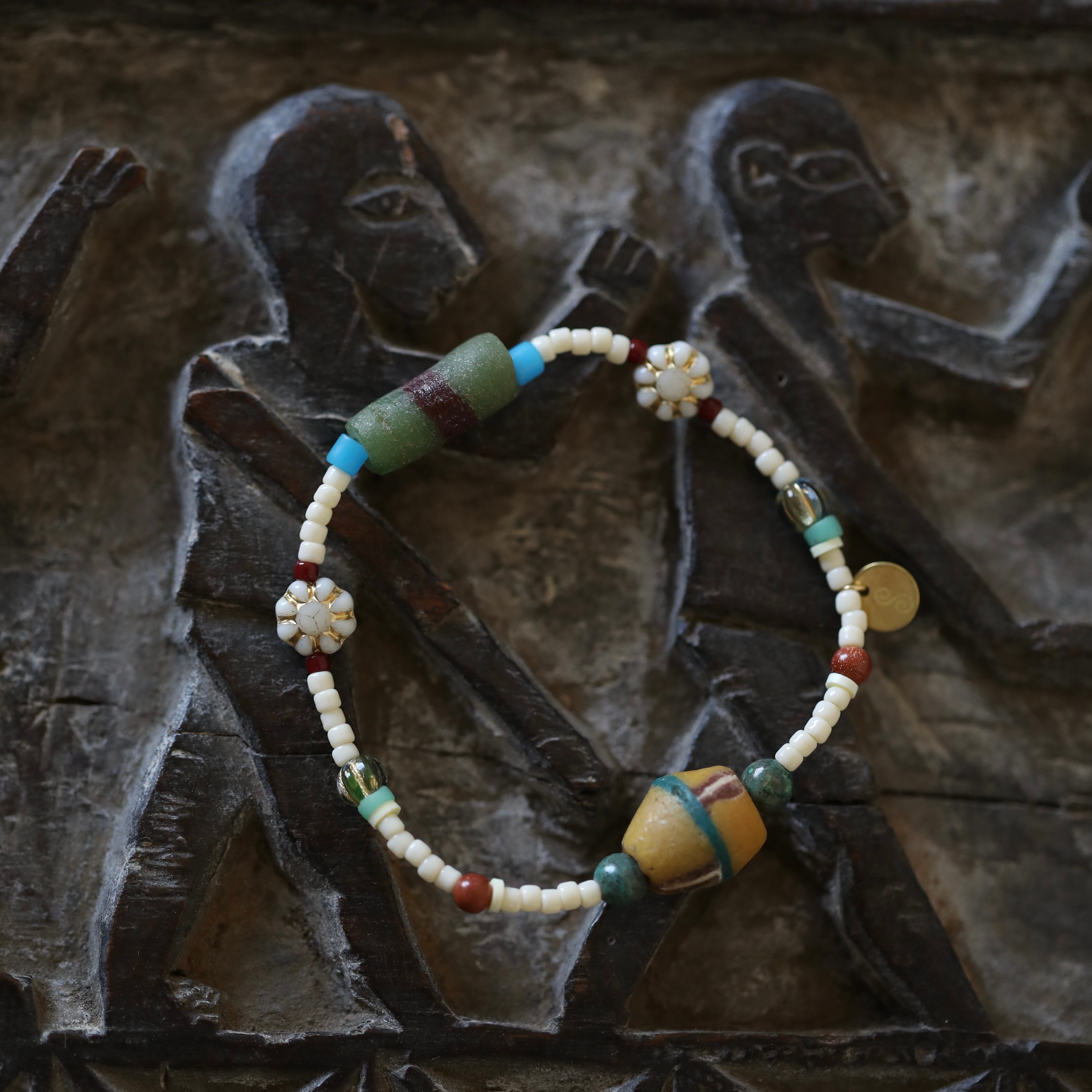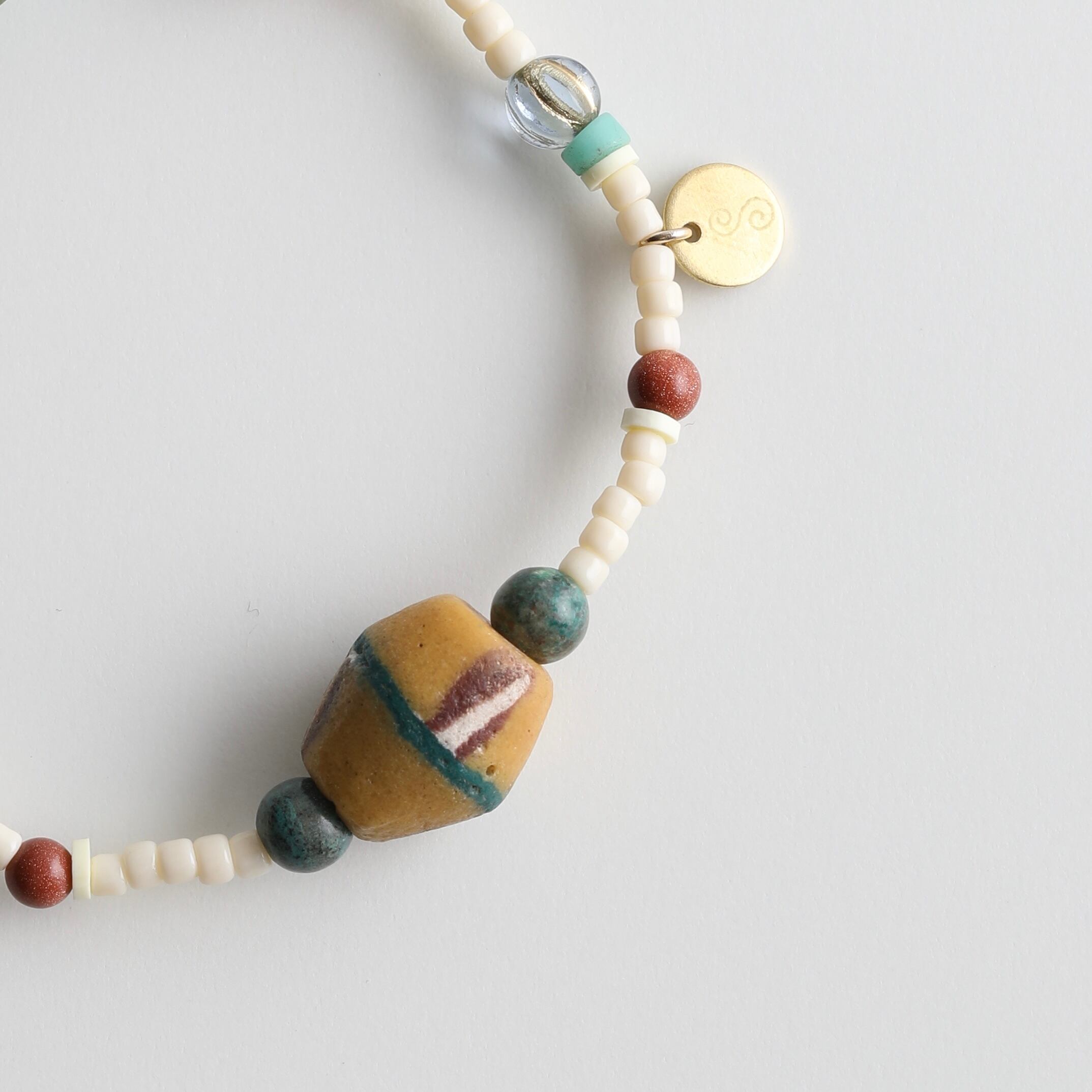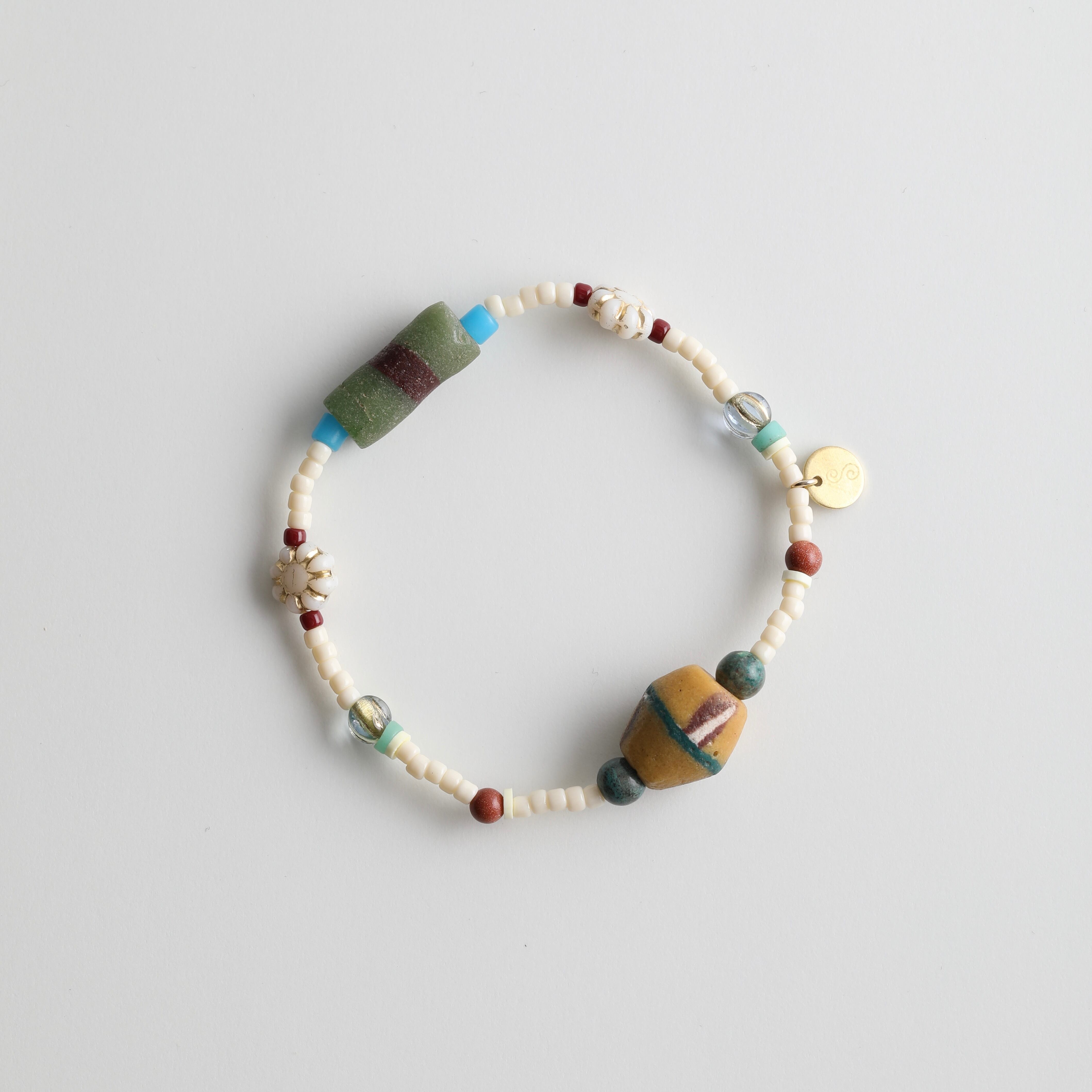 素材:ビンテージガラス、ビーズ、シリコンゴム
