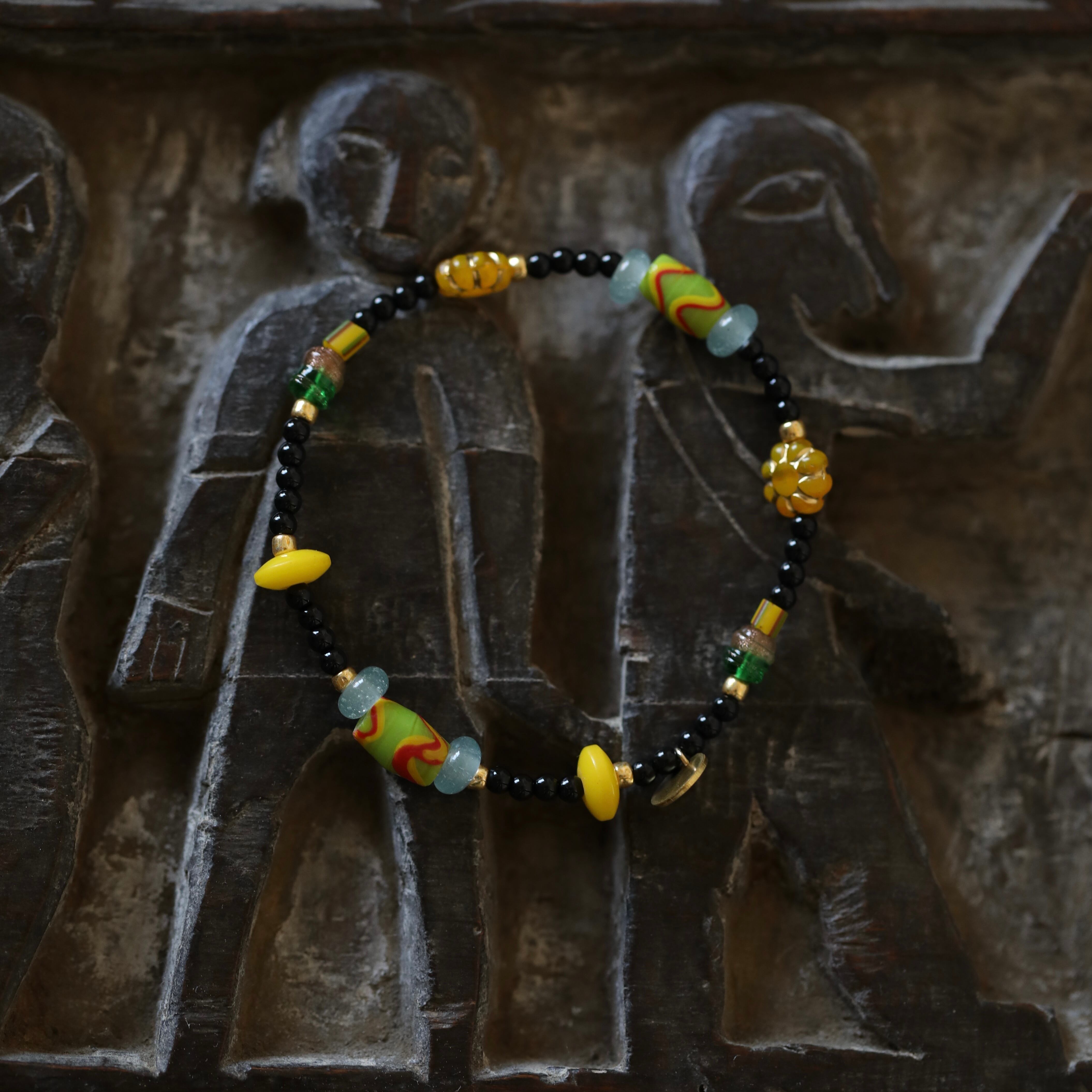 素材:ビンテージガラス、ビーズ、シリコンゴム