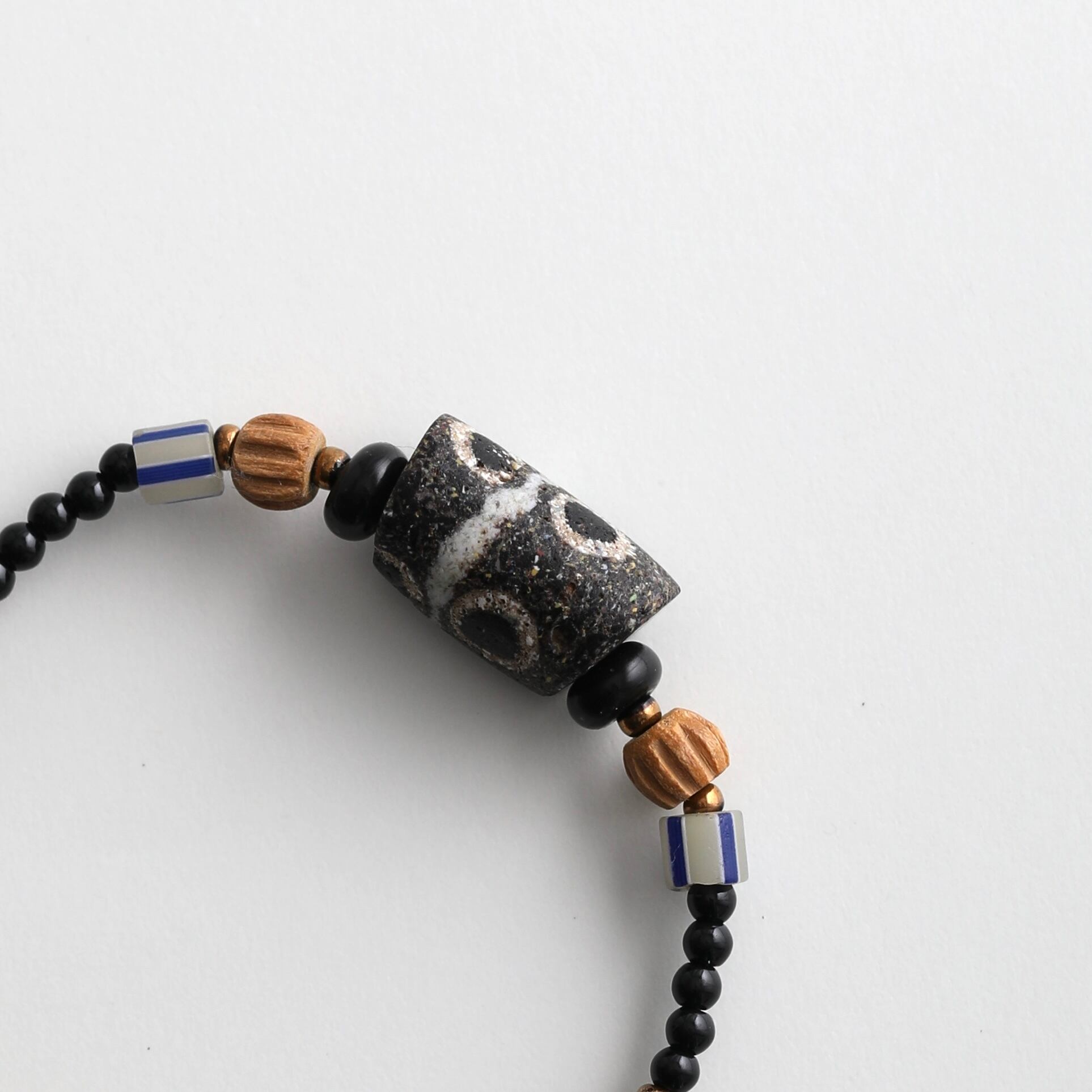 メインの真ん中の黒いビーズは中でも特に古いアンティークのビーズを(8〜9世紀)使用しています。1.7cm