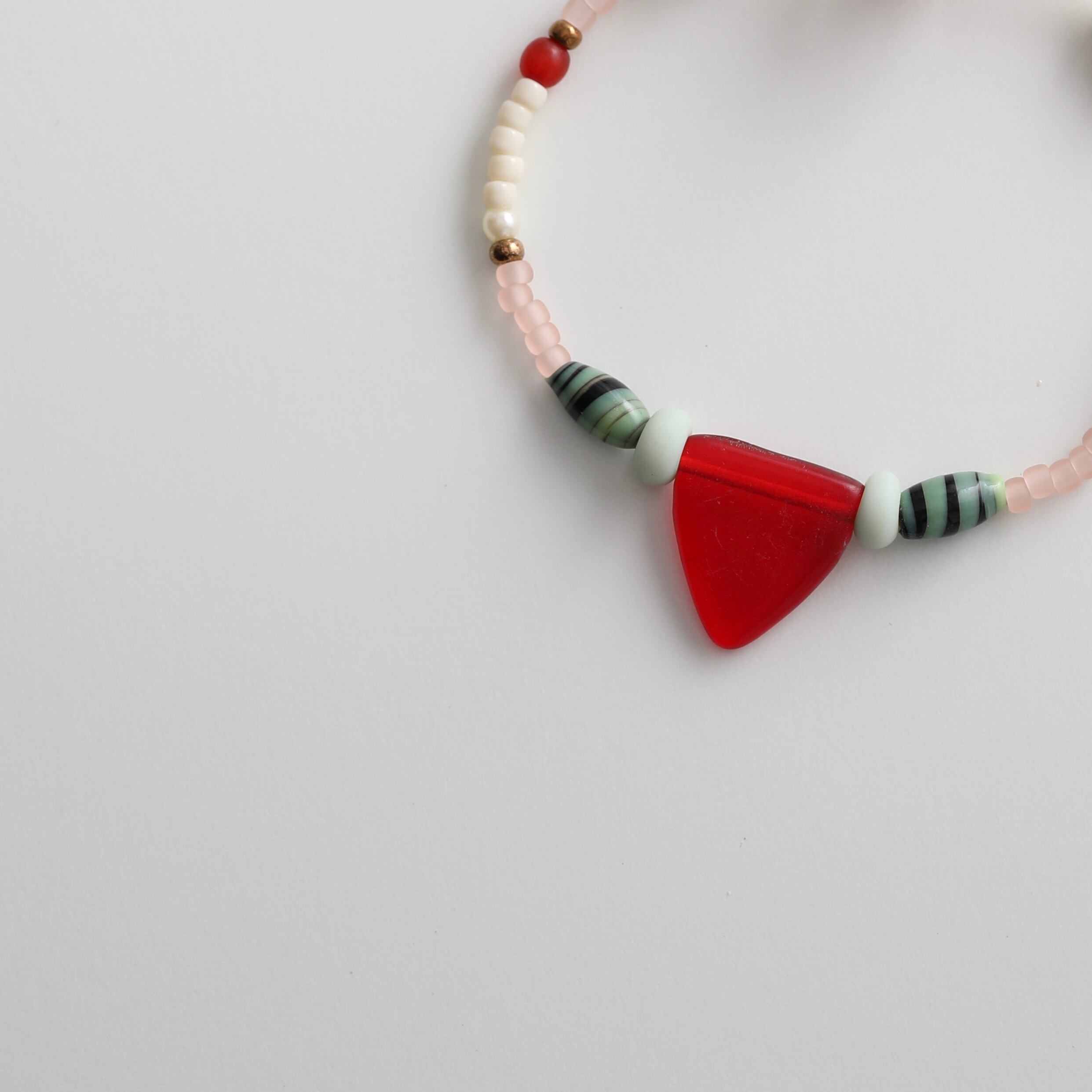 素材:ビンテージガラス、ビーズ、シリコンゴム