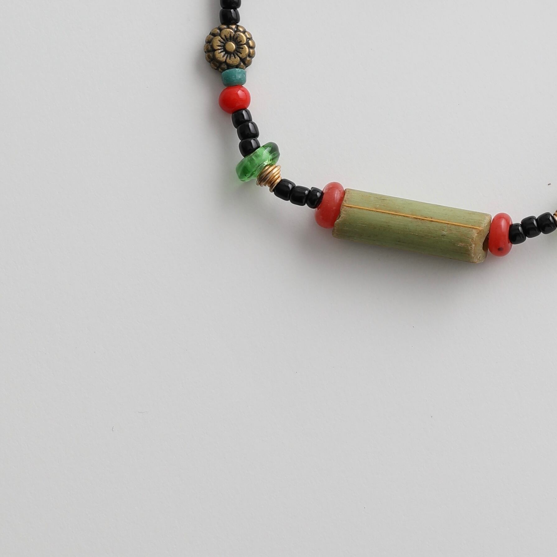 素材:ビンテージガラス、ビーズ、シリコンゴム